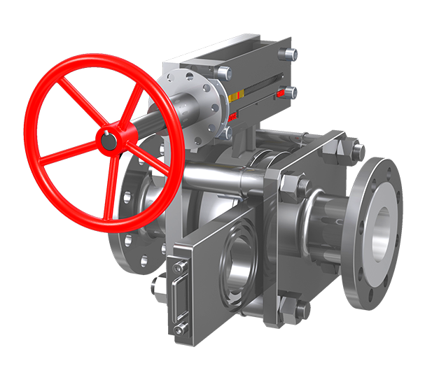 根據(jù)金屬硬密封三偏心蝶閥的機構進行改進,研制出雙向流硬碰硬旋球閥。旋球閥廣泛用于水泵出口端、管網(wǎng)系統(tǒng)、回收系統(tǒng)、高位水槽、易水淹的污水系統(tǒng)、防倒流系統(tǒng)等
